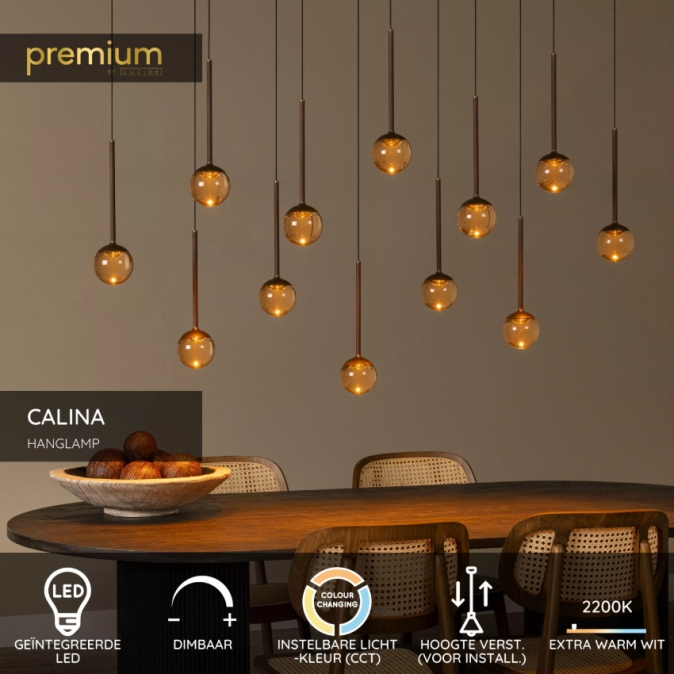 Verhoog de stijl in je interieur met de Lucide CALINA Hanglamp uit de Premium collectie. Deze luxe hanglamp is uitgerust met 12 geïntegreerde, dimbare LED-lichtpunten van 7W elk, die een warm wit licht van 2700K verspreiden. De lamp is ideaal voor binnengebruik in woonkamers of boven eettafels en is dankzij de hoogteverstelbaarheid perfect aanpasbaar aan jouw ruimte. Vervaardigd uit hoogwaardig acrylic en aluminium, straalt de CALINA moderne elegantie uit. Als onderdeel van de Premium collectie, biedt deze hanglamp niet alleen functionele verlichting, maar voegt hij ook een vleugje luxe toe aan je interieur.