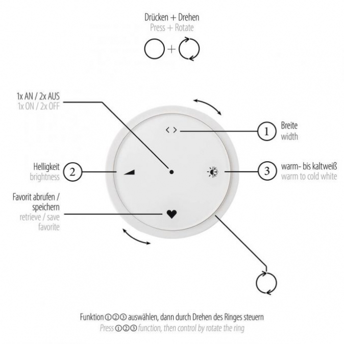 • Volledige Controle: De meegeleverde draadloze afstandsbediening biedt u directe controle over de dimfunctie, kleurtemperatuur en uw persoonlijke favoriete instellingen via de geheugenfunctie
