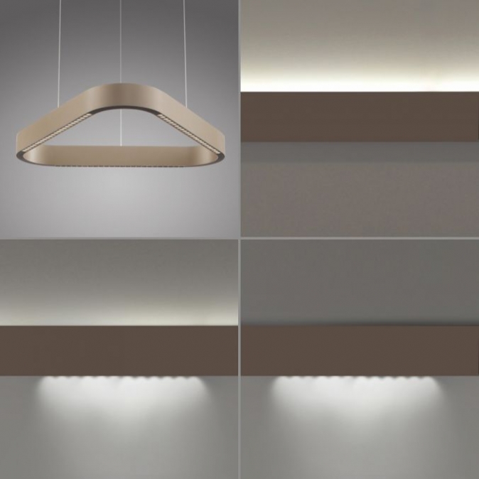 Verrijk je interieur met de Q-STRETTO, een driehoekige LED-hanglamp die design en innovatie naadloos combineert. Of het nu gaat om een stijlvolle boven de eettafel of een functionele lichtbron in een modern kantoor: deze lamp in elegant brons biedt de perfecte balans tussen sfeer en prestatie.