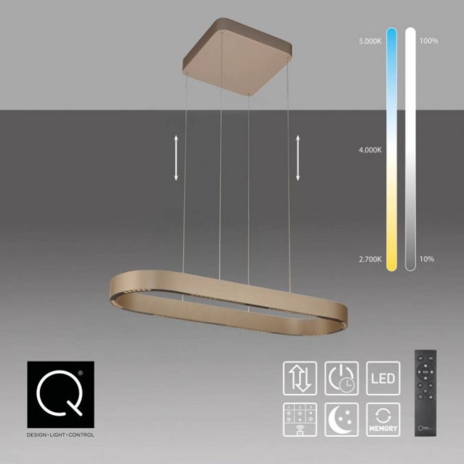 Verrijk je interieur met de Q-STRETTO, een ovale LED-hanglamp die design en innovatie naadloos combineert. Of het nu gaat om een stijlvolle boven de eettafel of een functionele lichtbron in een modern kantoor: deze lamp in elegant brons biedt de perfecte balans tussen sfeer en prestatie.