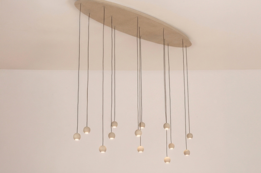 Grote beige design hanglamp met 13 bolletjes