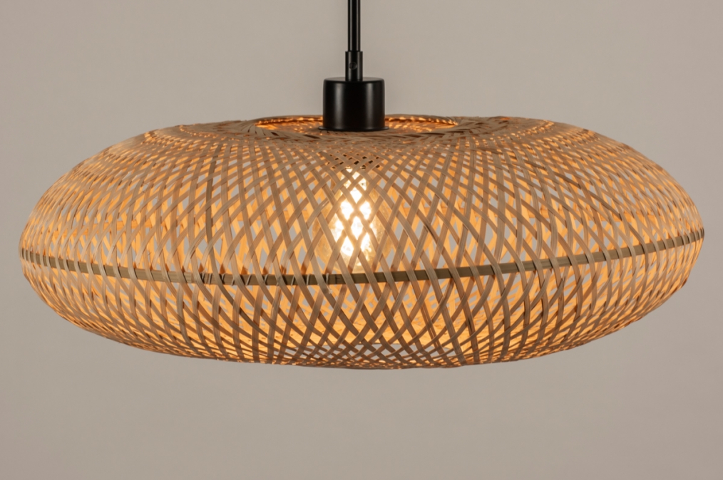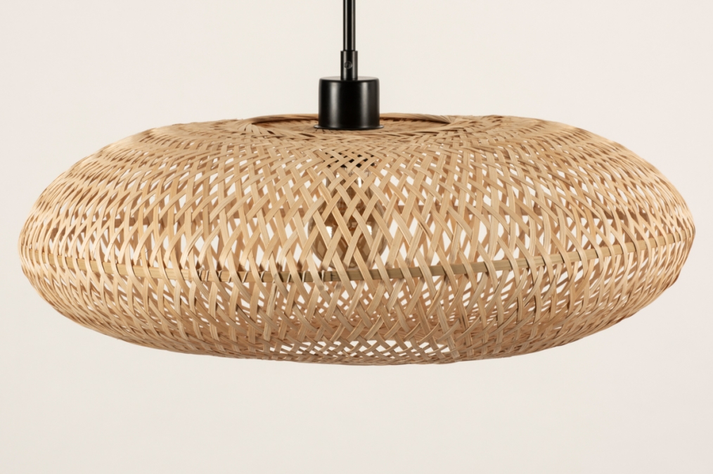 Grote rotan hanglamp met zwart snoer