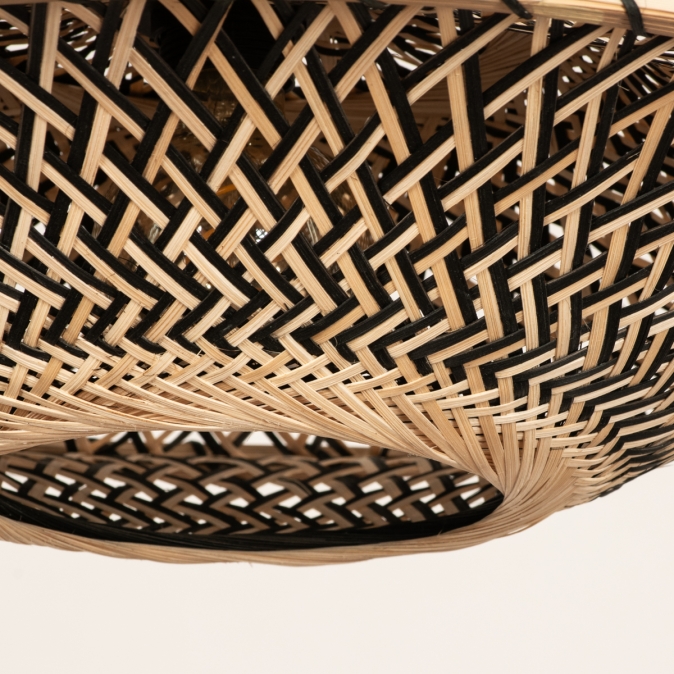 Rotan is een natuurlijk materiaal dat goed te combineren is met stoere materiaalsoorten zoals beton, leer en metaal. Door deze combinaties ontstaat een fijne en warme sfeer in huis! Een unieke combinatie: een ronde rotan kap met een zwarte verstelbare pendel. Uniek, mooi en functioneel!Samengesteld artikel: