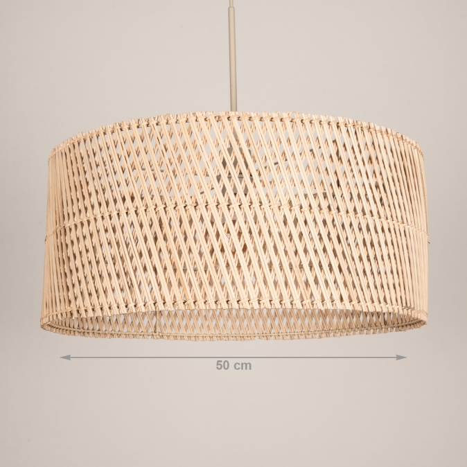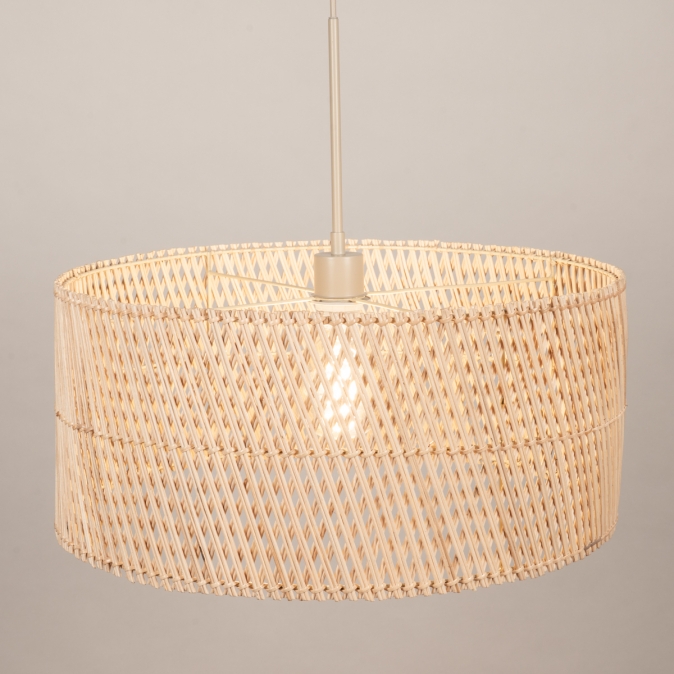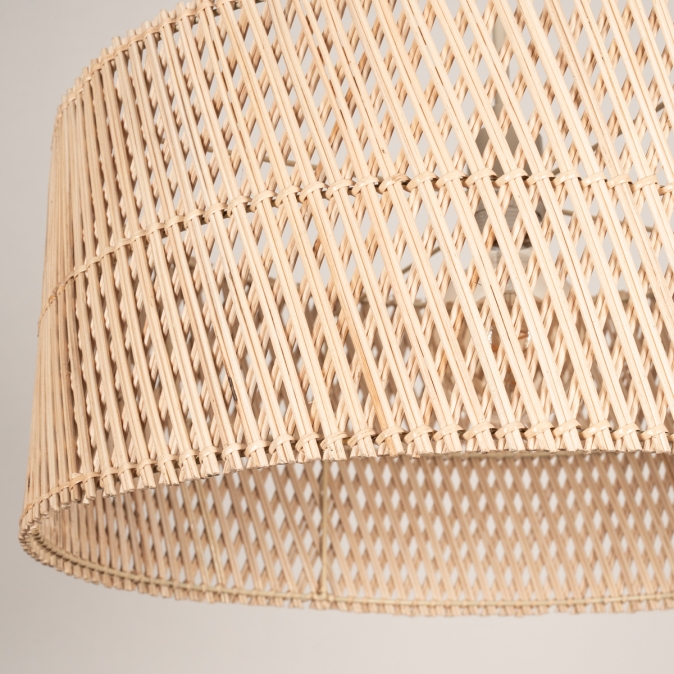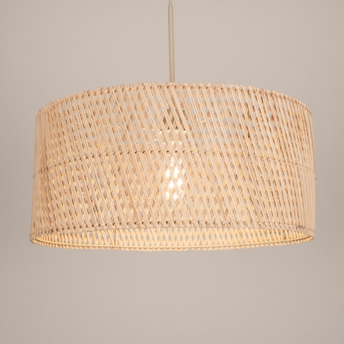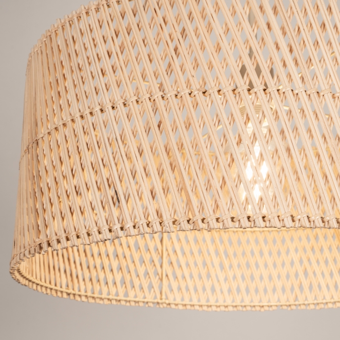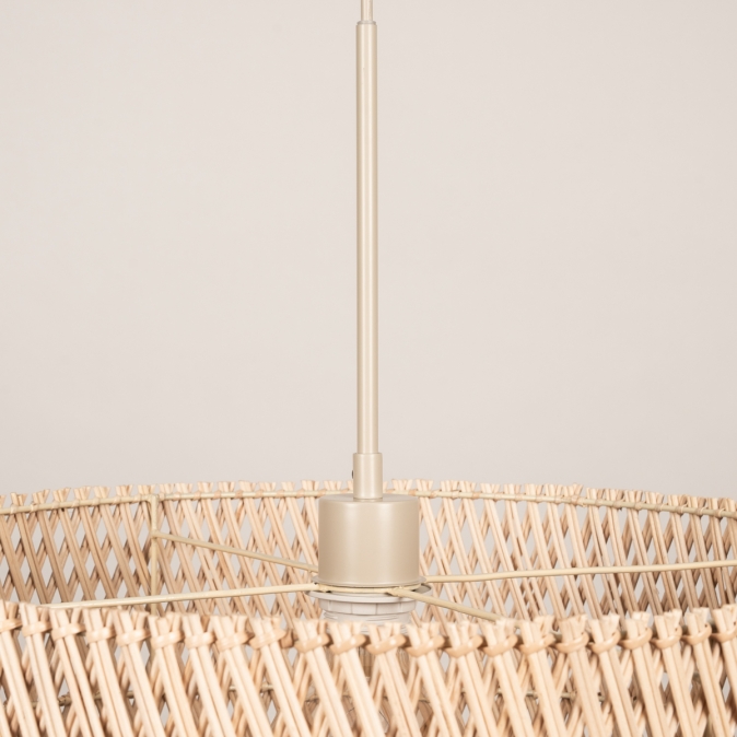 Groot, stijlvol en altijd passend – deze hanglamp met een ronde bamboe kap en een beige pendel is de perfecte keuze voor wie houdt van een rustige, natuurlijke uitstraling met een moderne twist. De rotan kap is strak vormgegeven en laat het licht prachtig doorstromen. De beige, ronde plafondplaat, het mooie snoer en de beige fitting geven het geheel een minimalistisch en tijdloos karakter. Met deze lamp kun je alle kanten op! Hang hem solo in een slaapkamer of hal voor een subtiele blikvanger, of combineer meerdere exemplaren boven een lange eettafel voor een speels en stijlvol effect. Door het eenvoudige design is deze lamp ook perfect te mixen en matchen met andere (bamboe) lampen uit ons assortiment.Voordelen van deze beige hanglamp met bamboe kap