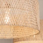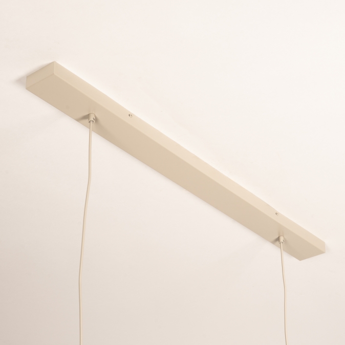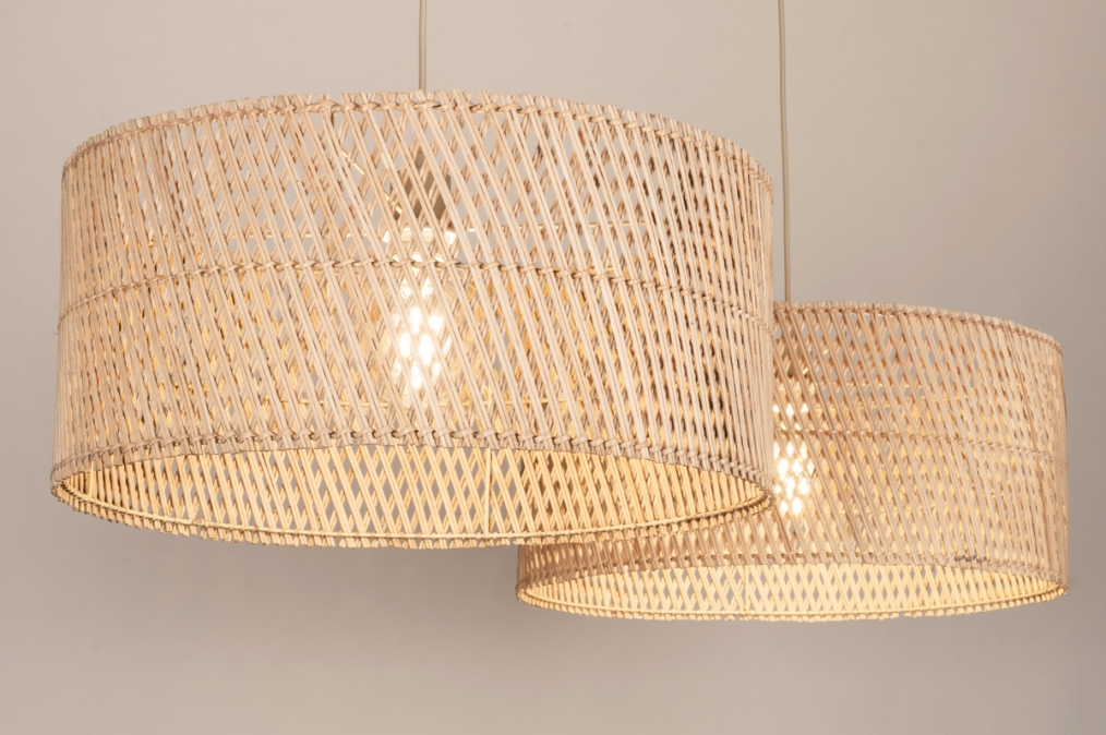 Twee prachtige ronde bamboe kappen boven jouw eettafel, dat geeft sfeer! De bamboe kappen hangen met beige snoeren aan een beige langwerpige plafondplaat. Deze plafondplaat past over een standaard contactdoos en 'verstopt' alle storende snoeren. Zo blijft het plafond rustig en gaat alle aandacht naar de mooie kappen. En terecht!Voordelen beige hanglamp met bamboe kappen