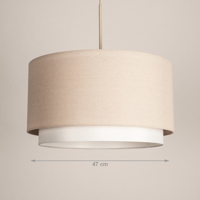 Een stoffen hanglamp met net dat beetje extra! Deze beige hanglamp met dubbele kap geeft jouw interieur direct warmte en sfeer. De buitenste kap heeft een linnenstructuur en een chique beige tint, terwijl de witte binnenkap subtiel onder de buitenste kap uit piept. Dit speelse contrast zorgt voor een verfijnde, gelaagde look. Hang deze lamp boven de eettafel, in de slaapkamer of in de hal en geniet van sfeervol, diffuus licht zonder storende inkijk.Voordelen beige Japandi hanglamp E27