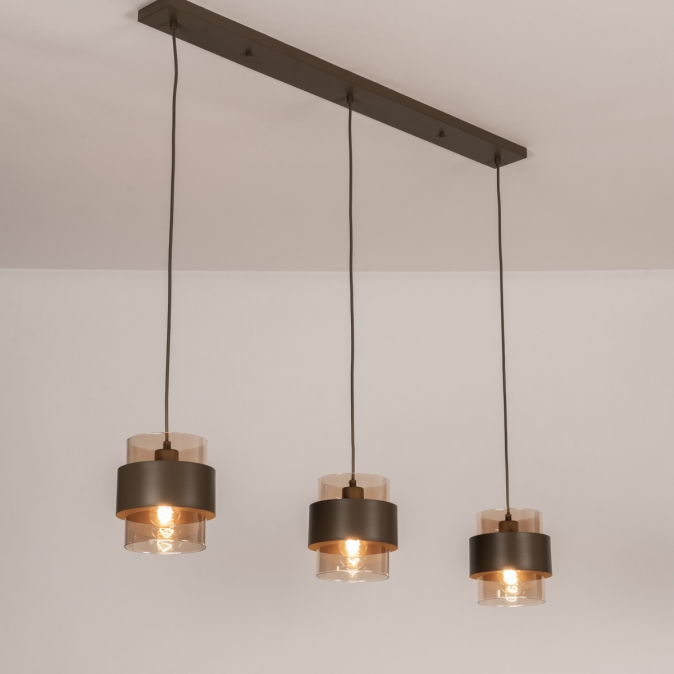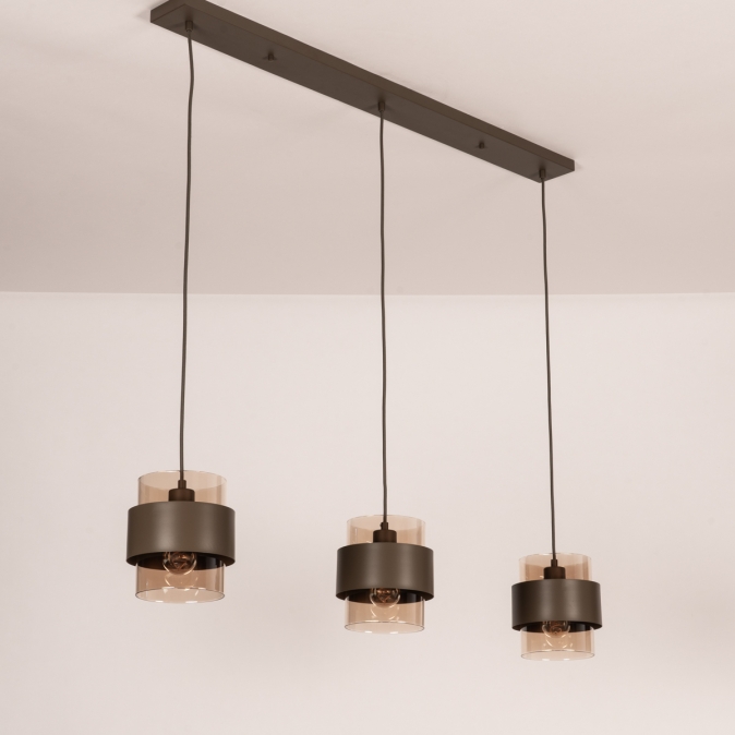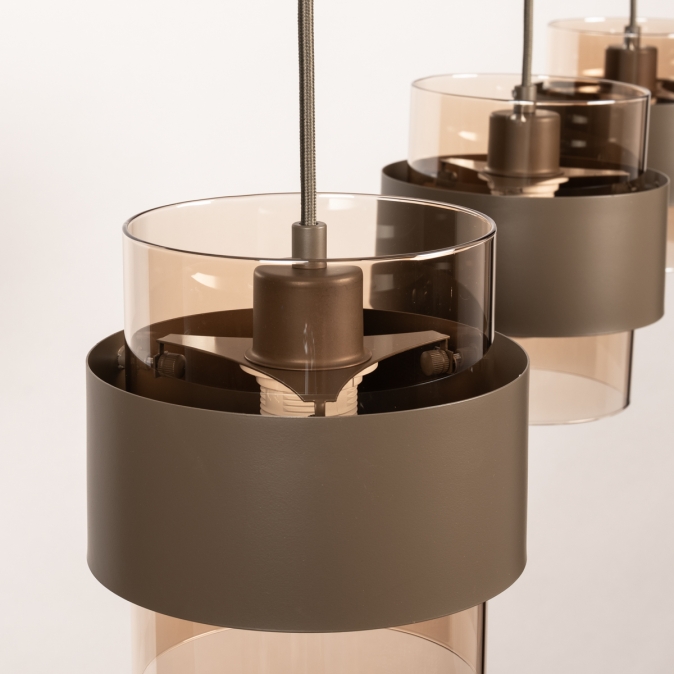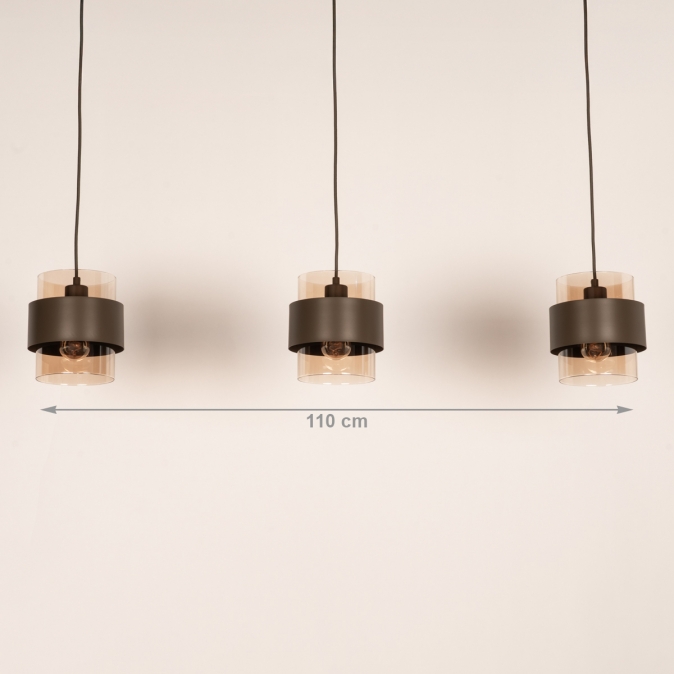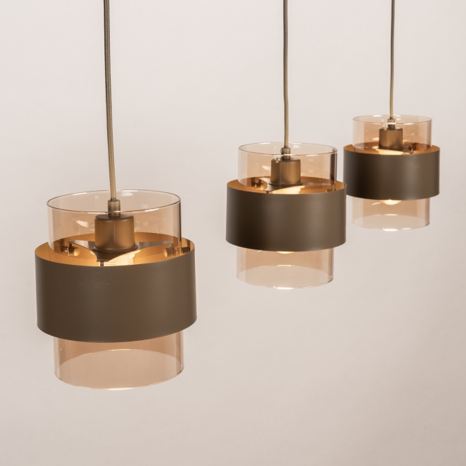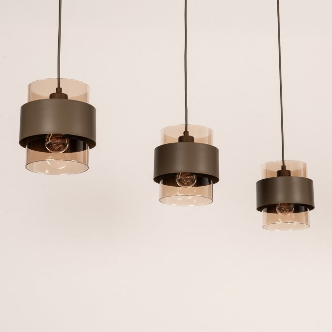 Elke kap is uitgevoerd in champagnekleurig glas, gecombineerd met bruine details. Deze hanglamp weet wat stralen is! Het licht straalt u tegemoet zodra u de lamp aanzet. Dat komt door de mooie, amberkleurige glazen van deze chique hanglamp. Amberkleurig glas heeft een geel / bruine tint maar is toch transparant en zorgt voor sfeervol licht. Over de mooie, glazen kokers is een bruine, matte ring geplaatst. De ruimte tussen de ring en de koker zorgt voor een fraai diepte effect.Voordelen bruine hanglamp van glas