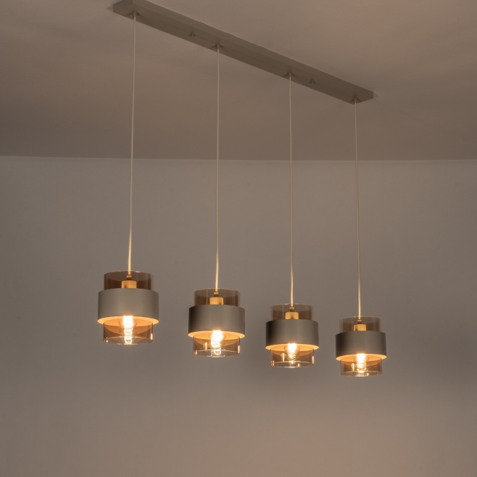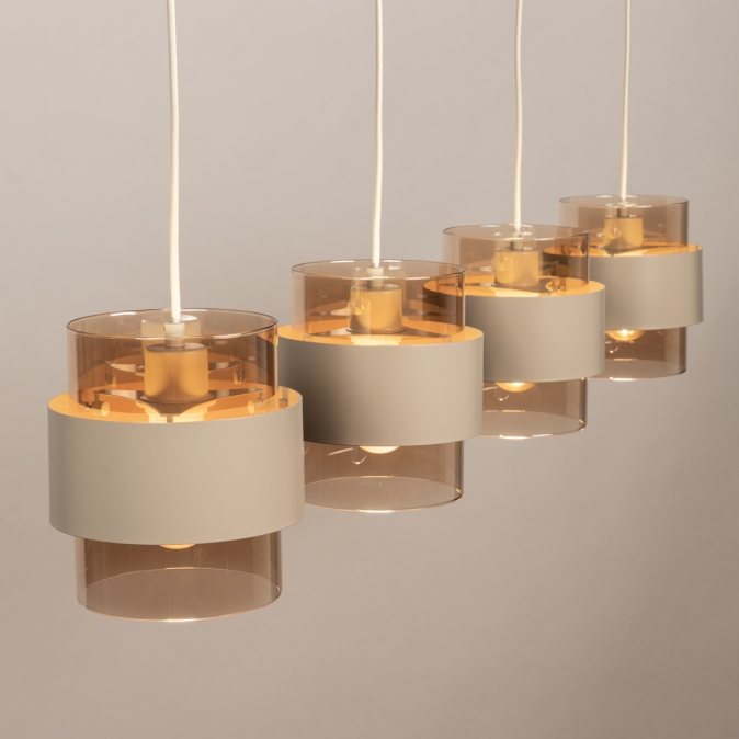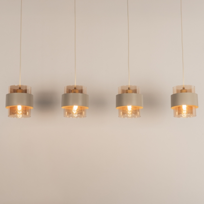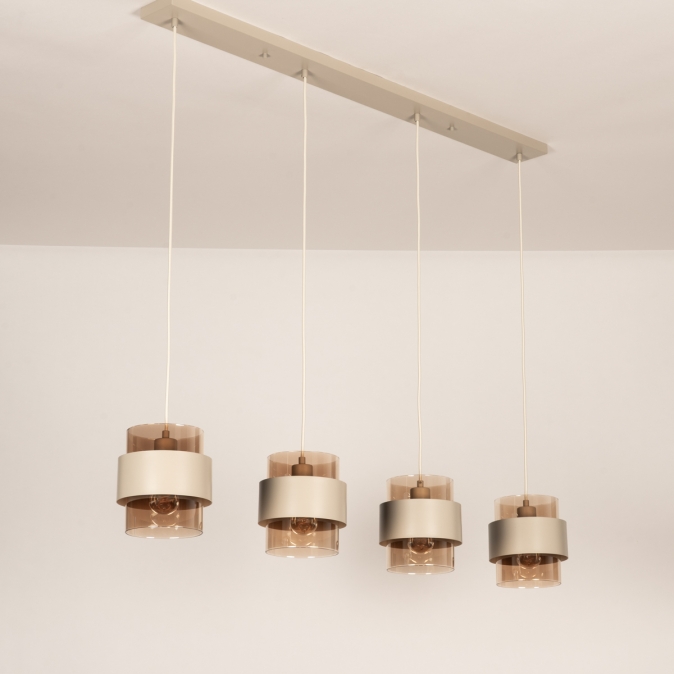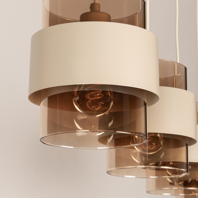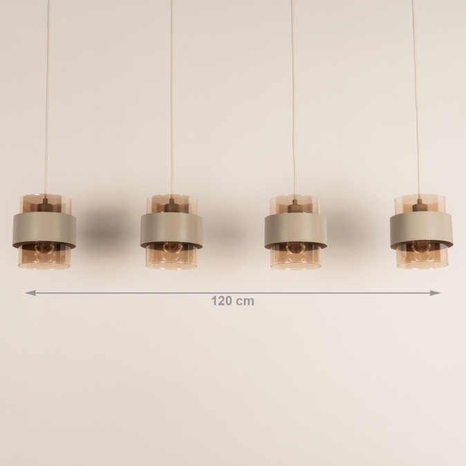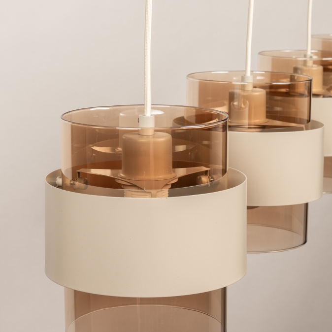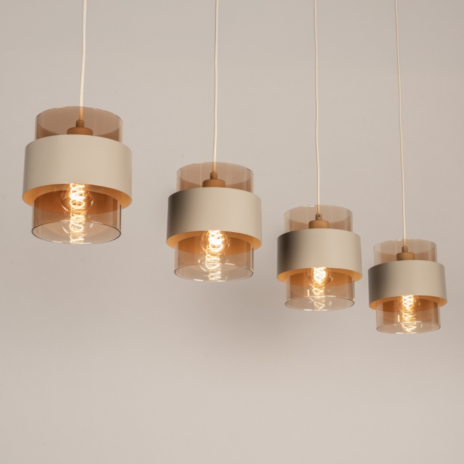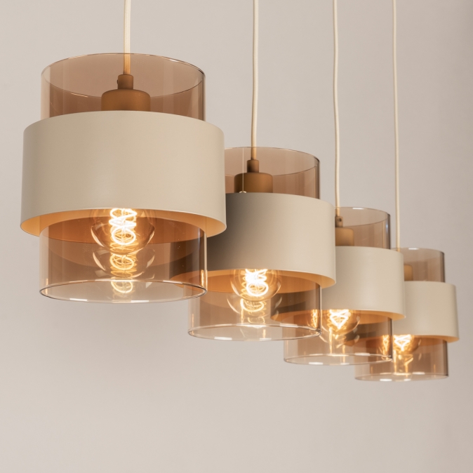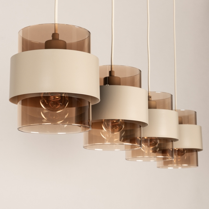 Elke kap is uitgevoerd in amberkleurig glas, gecombineerd met beige details. Deze hanglamp weet wat stralen is! Het licht straalt je tegemoet zodra je de lamp aanzet. Dat komt door de mooie, amberkleurige glazen van deze chique hanglamp. Amberkleurig glas heeft een geel / bruine tint maar is toch transparant en zorgt voor sfeervol licht. Over de mooie, glazen kokers is een beige, matte ring geplaatst. De ruimte tussen de ring en de koker zorgt voor een fraai diepte effect.Voordelen beige hanglamp van glas