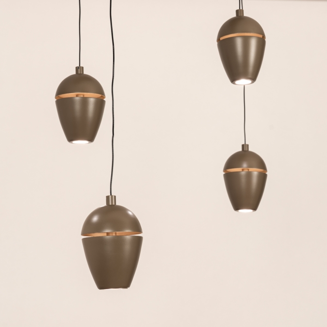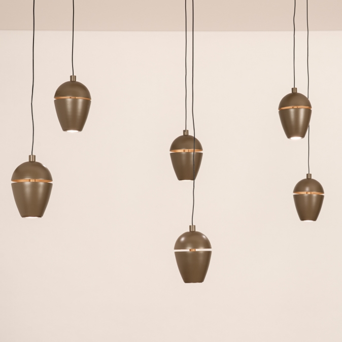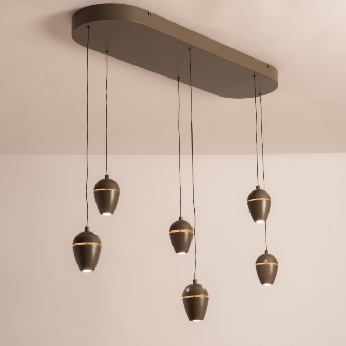 Deze bruine hanglamp valt op door zijn ronde, vloeiende vormgeving. Het unieke design bestaat uit een langwerpige plafondplaat met afgeronde hoeken, met daaraan zes bollen die die taps toelopen naar onderen. Aan de onderzijde ligt de lichtbron verzonken. Halverwege de bol is een subtiele dwarsdoorsnede zichtbaar. De binnenzijde heeft een zachte champagnekleur welke zichtbaar wordt zodra de lamp wordt ingeschakeld. Deze lamp is voorzien van een easy lift systeem en is dus in hoogte verstelbaar. Je kunt elke bol afzonderlijk oplichten en omhoog of omlaag te bewegen. Zo kun je de vormgeving steeds naar wens aanpassen. Dit verrassende model is zeer geschikt voor vele doeleinden; bijvoorbeeld boven een eettafel, bureau of keukenblad; de mogelijkheden zijn eindeloos!Voordelen bruine hanglamp