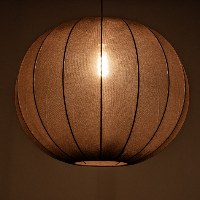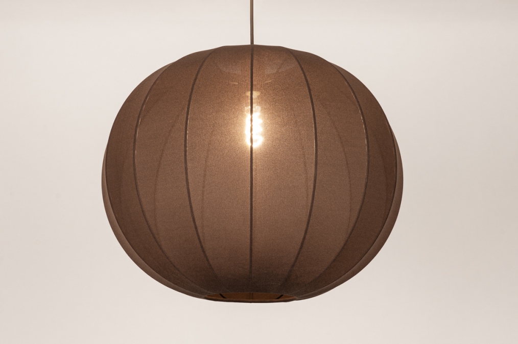 Japandi Hanglamp Bruin – Grote ronde lampionkap met een diameter van 55 cm