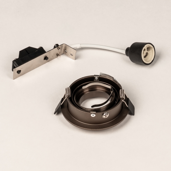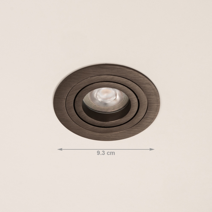 Deze koffiebruine inbouwspot wordt geleverd met klemveren en betonveren. Gebruik de klemveren voor een verlaagd plafond. Moet de spot in beton worden ingebouwd, gebruik dan de speciale betonveren. De spot is dimbaar. Welke dimmer geschikt is hangt af van de led lamp die wordt gebruikt, of maak het heel makkelijk en kies voor een led lamp met drie standen. In dat geval 'dim' je het licht in drie stappen met de bestaande schakelaar. De inbouwdiepte van deze inbouwspot is 9 cm. Is dit te hoog? Met een platte GU10 fitting verlaag je de inbouwdiepte met maar liefst 2 cm! De inbouwdiepte is dan nog maar 7 cm. De platte fitting is te bestellen onder artikelnummer 83999.Afmetingen
