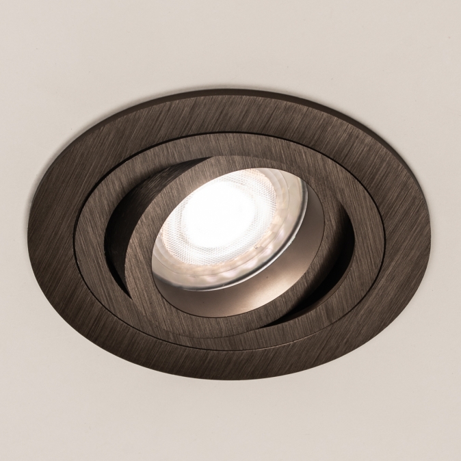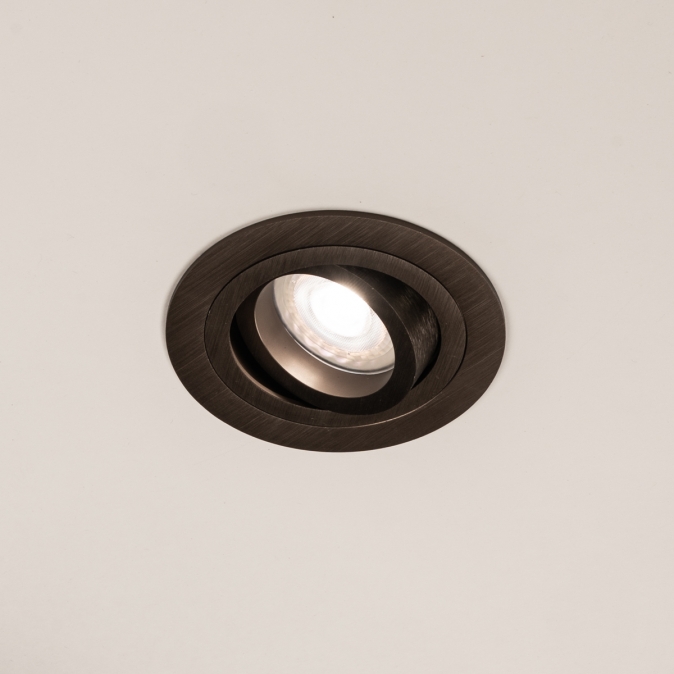 Deze richtbare inbouwspot is gemaakt van vol aluminium en heeft een koffiebruine kleur. De ronde inbouwspot is draaibaar en kantelbaar. Handig, want zo bepaal je zelf de richting van het licht. De GU10 led lamp (excl.) ligt verzonken waardoor je niet direct in de spot kijkt en dat is fijn voor je ogen. Ook fijn: de led lamp vervang je eenvoudig door de binnenste ring naar beneden te trekken. De spot zelf hoeft dus niet uit het plafond gehaald te worden.Voordelen ronde inbouwspot met GU10 fitting