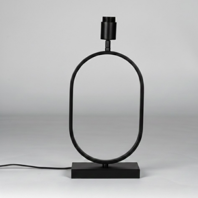 Stel je eigen tafellamp samen! Deze zwarte tafellamp voet is de ideale basis voor een lamp die helemaal past bij jouw stijl. Het metalen frame heeft een elegante open ovale vorm en een rustige, ton-sur-ton uitstraling. Combineer ‘m met een losse kap naar keuze en maak je eigen unieke tafellamp voor op het dressoir, nachtkastje of bureau.