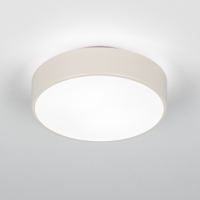 Klassiek en modern. Deze ronde plafondlamp is perfect als basisverlichting. Het matte glas zorgt voor mooi egaal licht en de beige rand geeft de lamp een warme uitstraling. De plafonnière met melkglas heeft twee fittingen waardoor het matte glas mooi gelijkmatig oplicht.Voordelen ronde, beige plafonnière