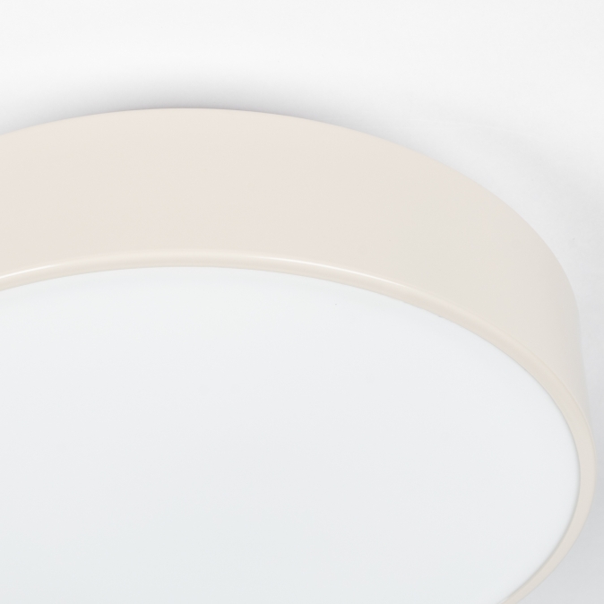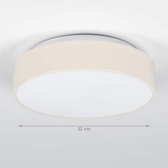 Klassiek en modern. Deze ronde plafondlamp is perfect als basisverlichting. Het matte glas zorgt voor mooi egaal licht en de beige rand geeft de lamp een warme uitstraling. De plafonnière met melkglas heeft twee fittingen waardoor het matte glas mooi gelijkmatig oplicht.Voordelen ronde, beige plafonnière
