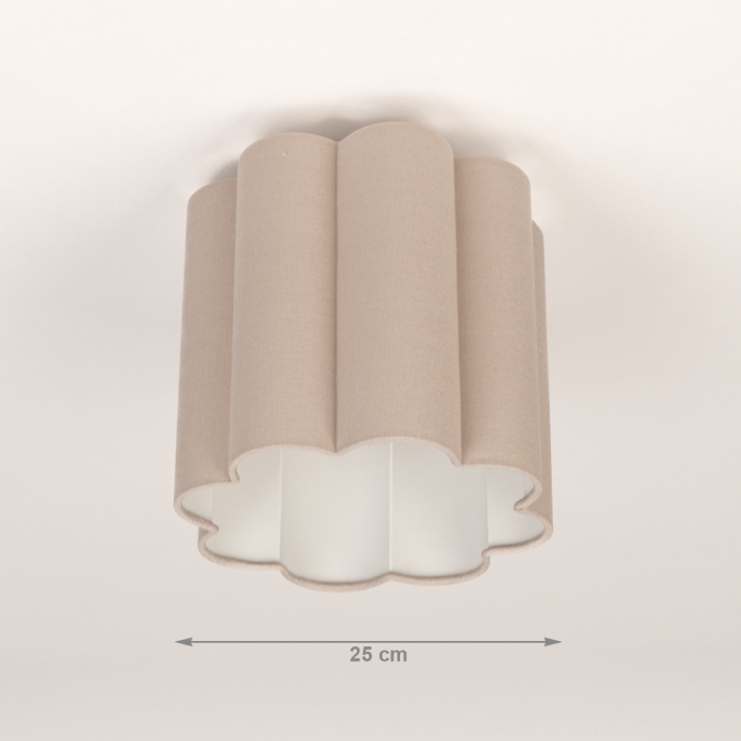 Breng warmte en karakter in je interieur met deze unieke plafondlamp in een warme taupe tint. Het design? Helemaal on trend! De scalloped plafondlamp is gemaakt van taupekleurige stof en brengt direct sfeer in je woonkamer, slaapkamer of hal. Dankzij het diffuus verspreide licht creëer je een gezellige en ontspannen ambiance – ideaal voor elke ruimte!Voordelen luxe plafondlamp van taupekleurige stof