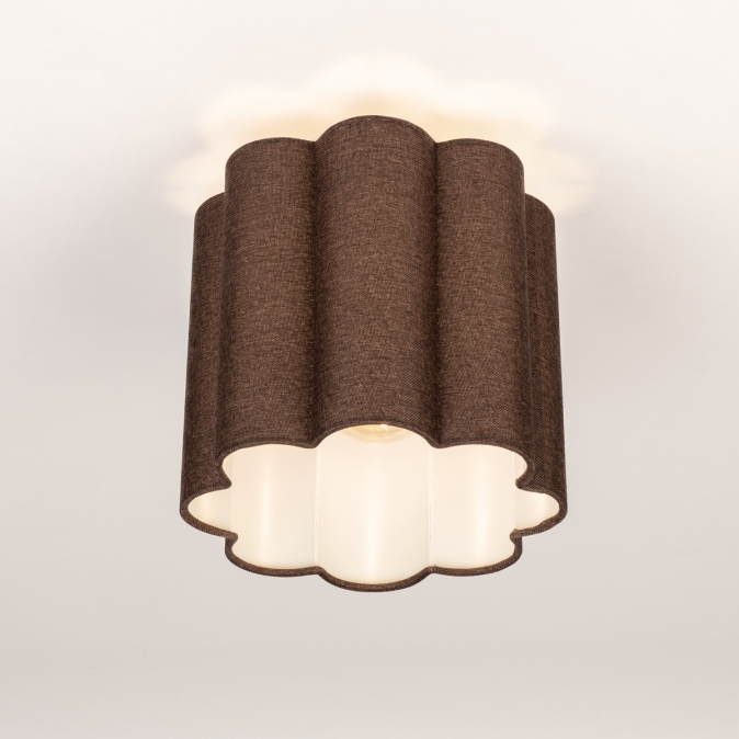 Scalloped plafondlamp van bruine stof