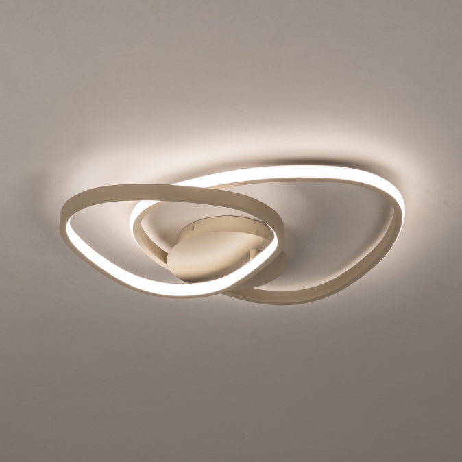 Dimbare, beige plafondlamp in organische vormgeving