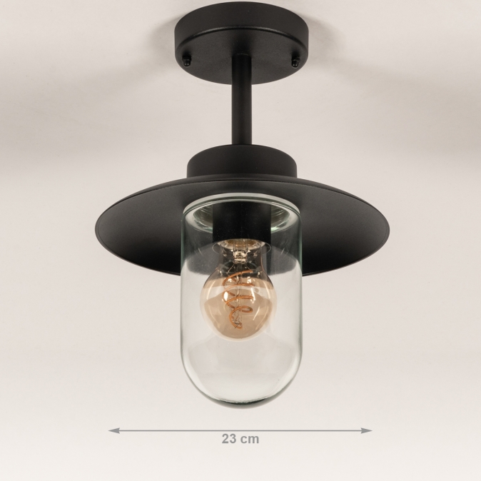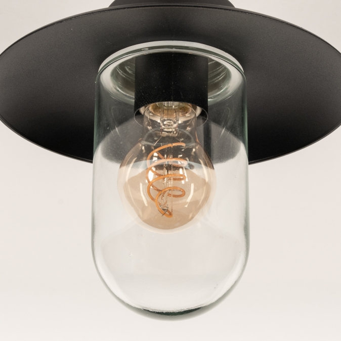 Een plafondlamp voor in de overkapping? Met deze boerderij plafondlamp voor buiten voeg je direct een fijne sfeer toe aan de overkapping. Dat wordt extra lang genieten van de tuin! Het model van deze buitenlantaarn wordt ook wel visserslamp genoemd en wordt gekenmerkt door de wijde en platte kap met daaronder een stolp van helder glas. De lichtopbrengst is hierdoor optimaal en je kunt de lamp extra sfeervol maken door te kiezen voor een mooie led filament lamp.Voordelen zwarte boerderij lamp