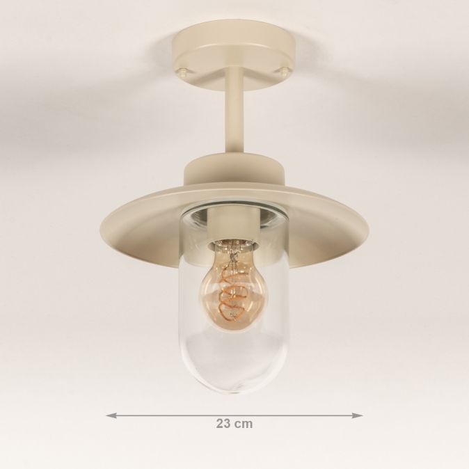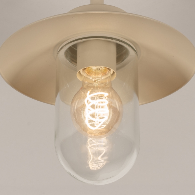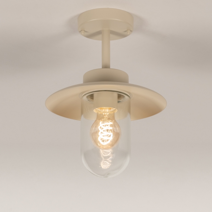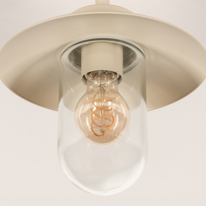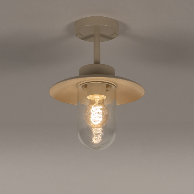 Een plafondlamp voor in de overkapping? Met deze boerderij plafondlamp voor buiten voeg je direct een fijne sfeer toe aan de overkapping. Dat wordt extra lang genieten van de tuin! Het model van deze buitenlantaarn wordt ook wel visserslamp genoemd en wordt gekenmerkt door de wijde en platte kap met daaronder een stolp van helder glas. De lichtopbrengst is hierdoor optimaal en je kunt de lamp extra sfeervol maken door te kiezen voor een mooie led filament lamp.Voordelen beige boerderij lamp