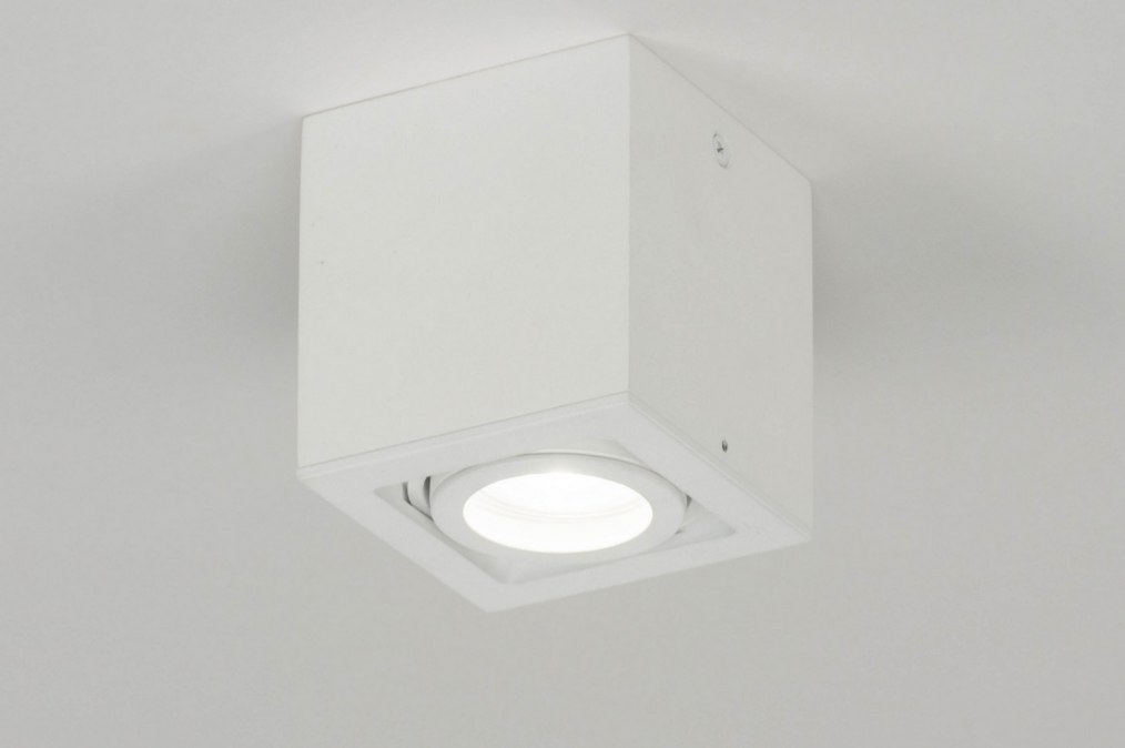 Moderne, strakke opbouwspot uitgevoerd in de kleur mat wit. Deze spot is volledig richtbaar; kantelbaar en draaibaar. Deze spot is voorzien van een GU10 fitting en hierdoor geschikt voor gebruik met vervangbare led verlichting. Lichtbronnen zijn niet meegeleverd. Een zeer functionele spot, geschikt voor vele doeleinden!