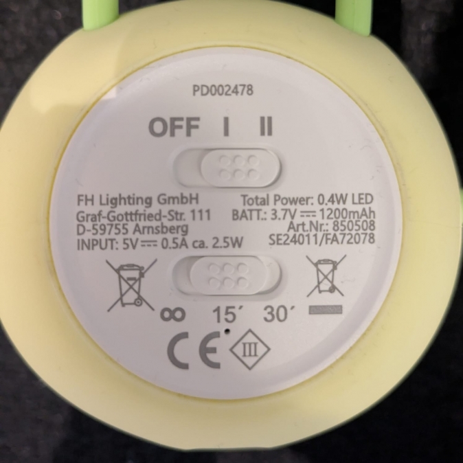 Kinderlampje Mango heeft een timerfunctie die u aan kunt zetten van continue tot en met 15 of 30 minuten.