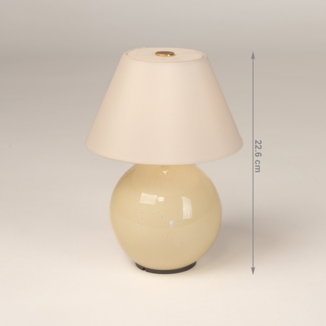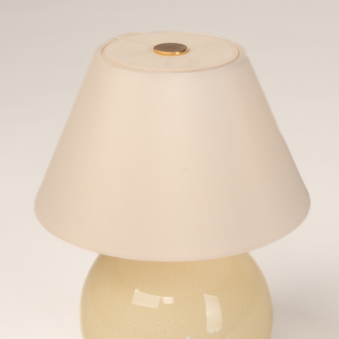 De lamp is voorzien van een schakelaar bovenop de kap en is dimbaar in drie verschillende standen. Opladen gaat via de meegeleverde magnetische oplaadkabel (wandadapter niet inbegrepen). Let op: kleur en luchtbellen in het glas kunnen variëren, wat elke lamp uniek maakt. Het exemplaar dat je ontvangt kan dus iets afwijken van de afbeeldingen.