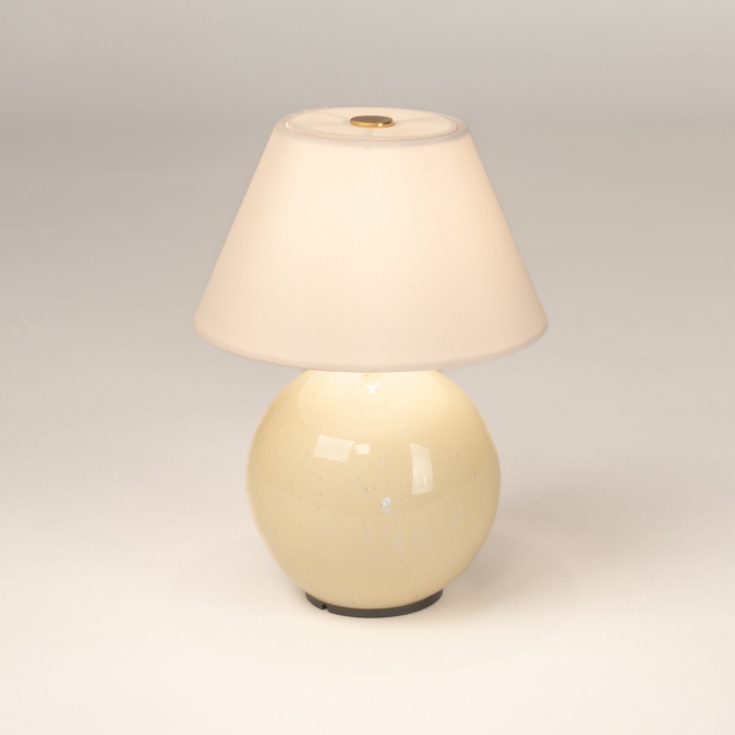 De draagbare tafellamp Iris neem je gemakkelijk overal mee naartoe dankzij het handige, kleine formaat en het snoerloze ontwerp. Designer Erika Norén liet zich voor deze lamp inspireren door de klassieke tafellampvorm: een eenvoudige lamp met een bolvormige voet en een traditionele lampenkap. De lamp heeft eigentijdse details, zoals een voet van gekleurd glas met onregelmatig geblazen luchtbellen en een bijpassende katoenen kap met een gesloten bovenkant die qua kleur overeenkomt met de voet.