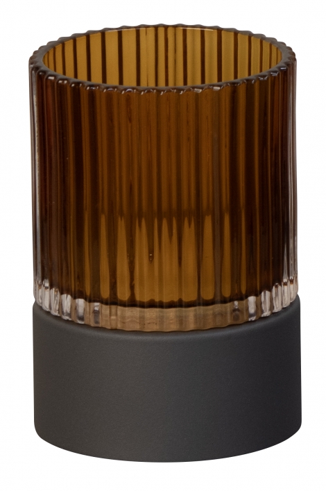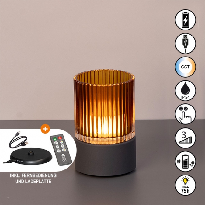 Tafellamp/Plafondlamp ribbel cognac glas oplaadbaar ip54 9,5x14,5cm