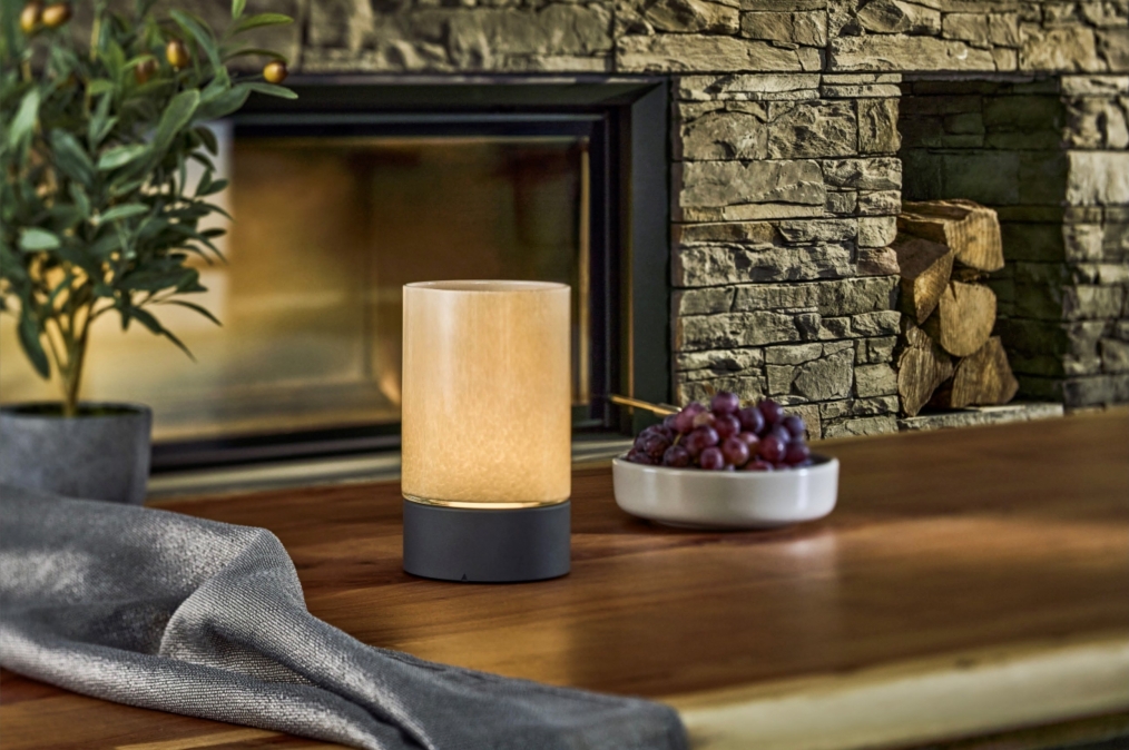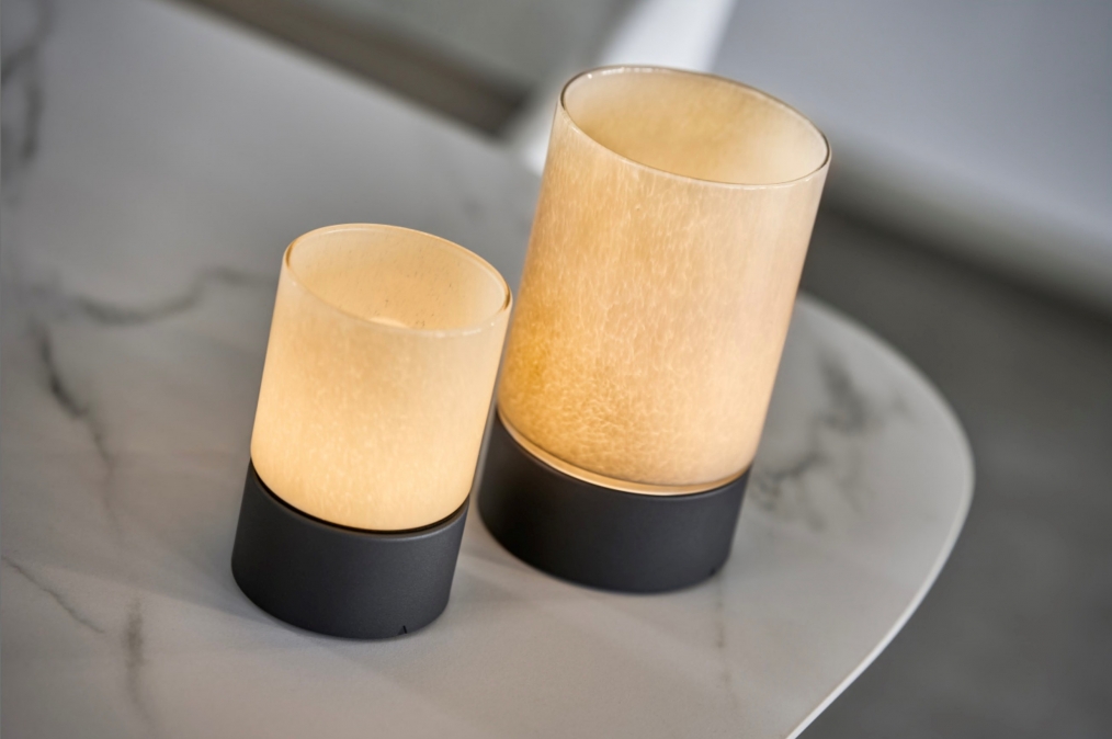 Tafellamp/Plafondlamp beige/zand glas oplaadbaar ip54 12x20cm