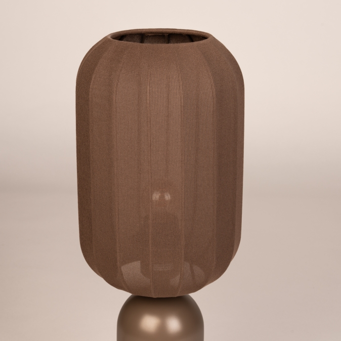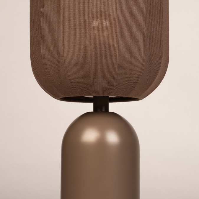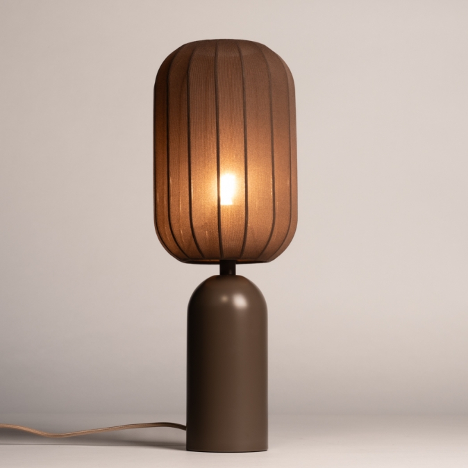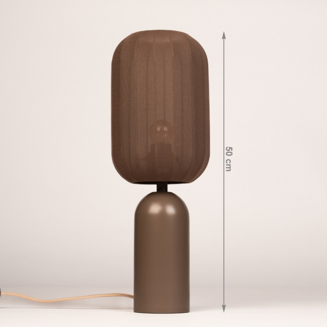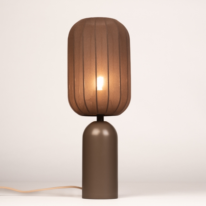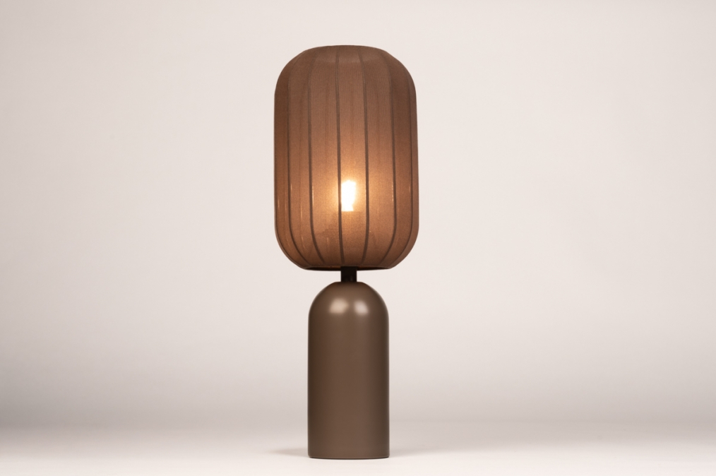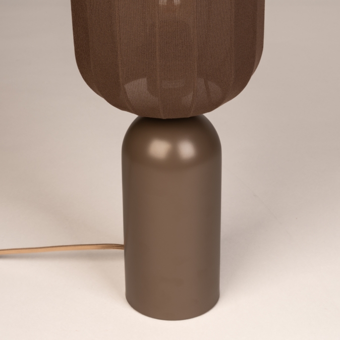 De lamp combineert een elegante, metalen voet in een chique, chocolade bruine tint met een verfijnde, doorschijnende kap in langwerpige lampion vorm. De zachte uitstraling van de kap zorgt voor een fijne, sfeervolle verlichting. Perfect voor op je nachtkastje, bureau of in een gezellige hoek!Voordelen bruine tafellamp met luxe kap