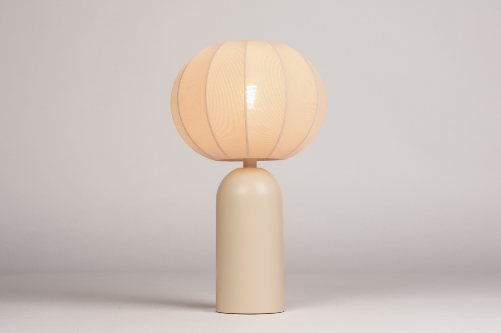 De lamp combineert een elegante, metalen voet in een rustige, beige tint met een verfijnde, doorschijnende kap in lampion vorm. De zachte, neutrale kleur van de kap zorgt voor een fijne, sfeervolle verlichting. Perfect voor op je nachtkastje, bureau of in een gezellige hoek!Voordelen beige tafellamp met luxe kap