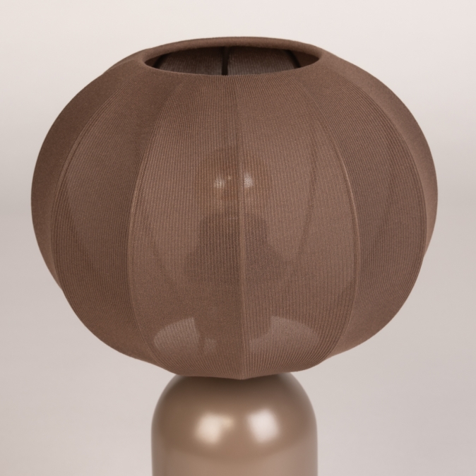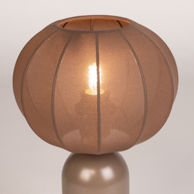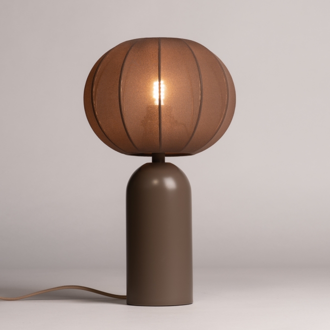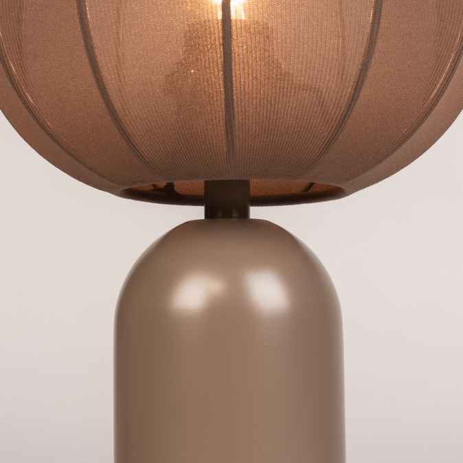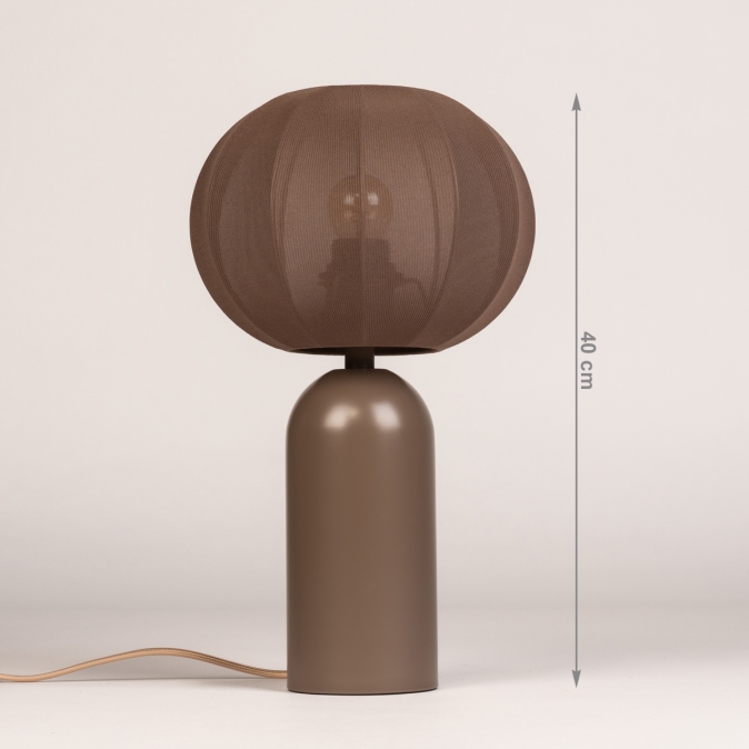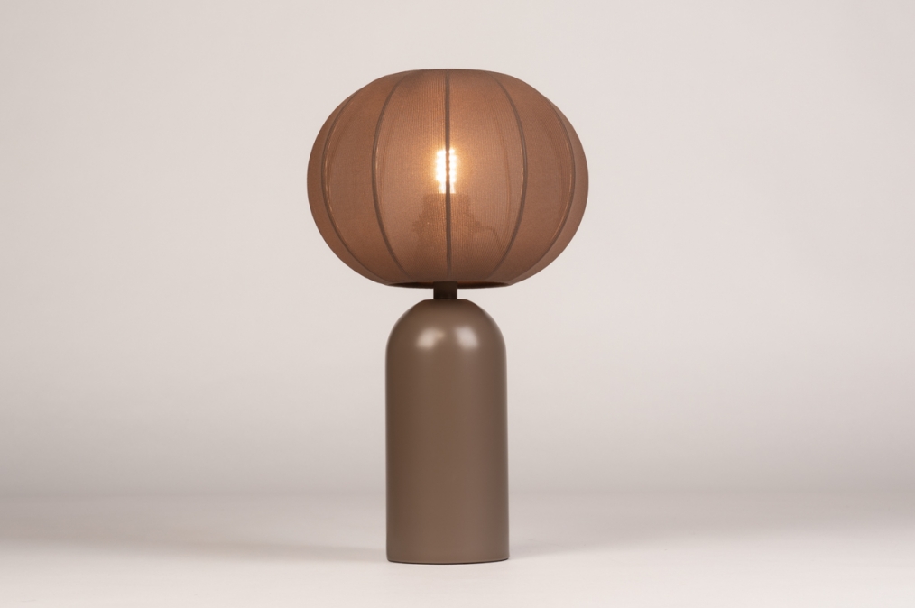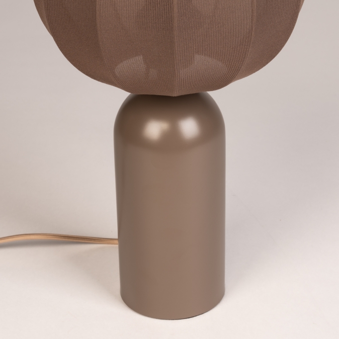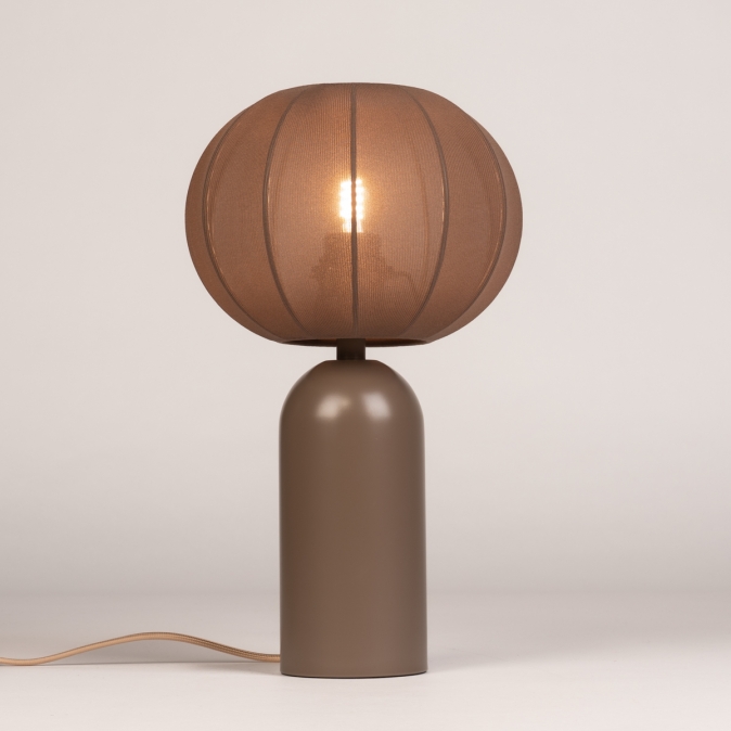 De lamp combineert een elegante, metalen voet in een chique, chocolade bruine tint met een verfijnde, doorschijnende kap in lampion vorm. De zachte uitstraling van de kap zorgt voor een fijne, sfeervolle verlichting. Perfect voor op je nachtkastje, bureau of in een gezellige hoek!Voordelen bruine tafellamp met luxe kap