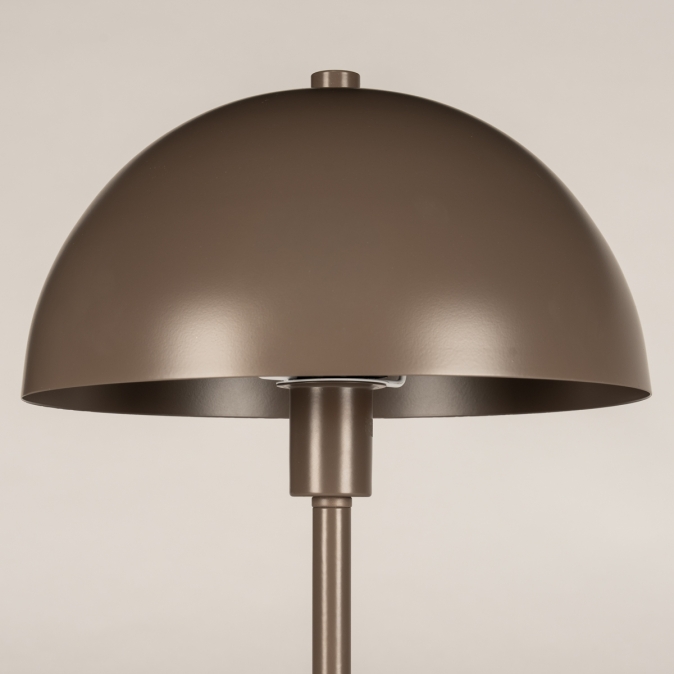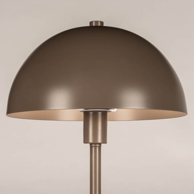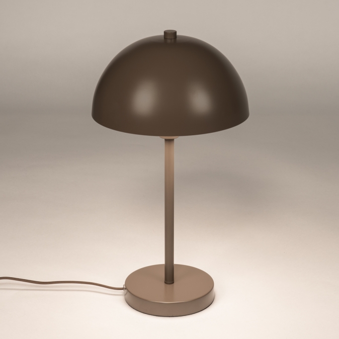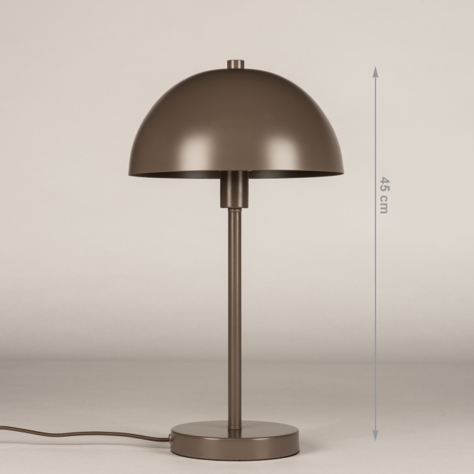 Wat een leukerd, deze bruine tafellamp. De tafellamp is gemaakt van metaal en heeft een halve ronde bol die staat op een slank armatuur. Het licht komt onder de kap vandaan en schijnt daardoor prachtig op een leuke bijzettafel, op het raamkozijn, nachtkastje, of bureau natuurlijk.Voordelen bruine tafellamp