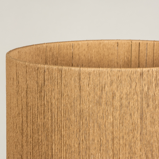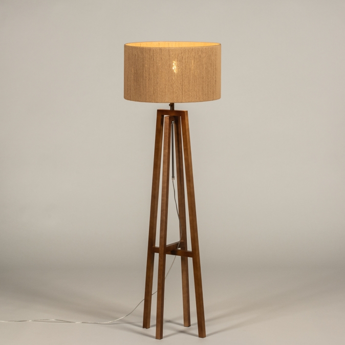 Een elegante vloerlamp met houten poten en ronde lampenkap van 'touw'. Het hout heeft een mooie donkere en warme kleur. Prachtig in combinatie met de opvallende lampenkap die gemaakt is van paper thread. Het lijkt op jute en geeft ook precies die rustieke look wat jute heeft. Maar paper thread is echt een ander materiaal. Zo is paper thread heel 'clean'; het heeft geen storende losse draadjes. Naast de mooie vormgeving en het natuurlijke materiaal, heeft de lamp nog meer te bieden. Zo zit de schakelaar op een heel handige plek; op de zwarte fitting van de lamp. Omdat de schakelaar op een makkelijke plek zit, is de lamp zo aan- of uitgezet, zonder de schakelaar aan het snoer onder de bank te moeten zoeken. Bijzonder: de jute kap kan eenvoudig in hoogte worden versteld door de verstelbare schroef.Voordelen vloerlamp van hout met touw kap