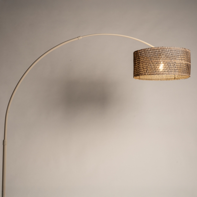 Haal de natuur in huis met deze bamboe vloerlamp. Door de open structuur van de bamboe kap en door de boog van de staande lamp, oogt deze lamp heel luchtig. De grote booglamp heeft de perfecte hoogte; de leefruimte niet wordt geblokkeerd. Door de grote reikwijdte komt het licht ook nog eens precies daar waar het nodig is. Het slanke armatuur is eenvoudig in hoogte te verstellen. Fijn! De ronde kap is gemaakt van bamboe, een natuurlijk en stevig materiaal. Een mooie combinatie met de warme beige kleur van de vloerlamp. We zien natuurlijke materialen, zoals rotan, hout, riet en bamboe, vaak terug in trendy woonstijlen zoals de Scandinavische en de Japandi woonstijl. Maar door het tijdloze design van de booglamp, past deze bamboe vloerlamp echt in elke woonstijl. Van klassiek tot modern en van bohemian tot hotel chique. Omdat bamboe zo'n sterk materiaal is, is de ronde lampenkap mooi strak en voelt ook heel stevig aan. De meeste lampen van natuurlijke materialen zoals sea grass of rotan, hebben geen strakke vorm. Dat is dan ook precies wat deze lamp uniek maakt; natuurlijk materiaal in een strakke vorm.Voordelen beige vloerlamp met bamboe kap rond