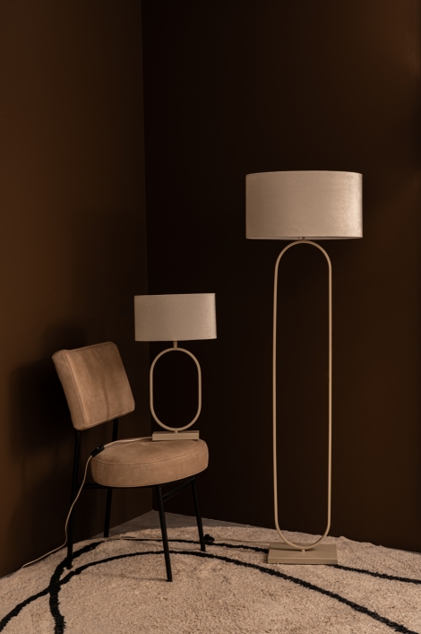 Deze beige vloerlamp voegt direct warmte en stijl toe aan je interieur. Het unieke metalen frame met een open ovale vorm zorgt voor een moderne uitstraling, terwijl de fluwelen lampenkap in een beige kleur een verfijnde sfeer creëert. Perfect voor een leeshoek, naast de bank of om een donkere hoek stijlvol te verlichten!Voordelen van de beige vloerlamp met velvet kap