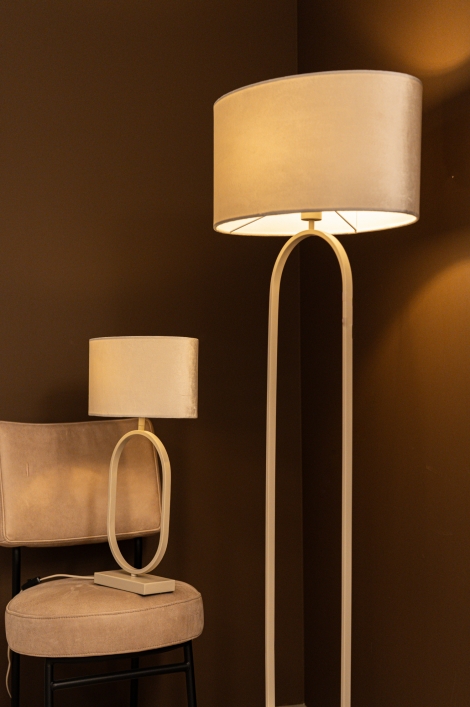 Stijlvolle vloerlamp in beige met ovale kap