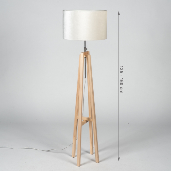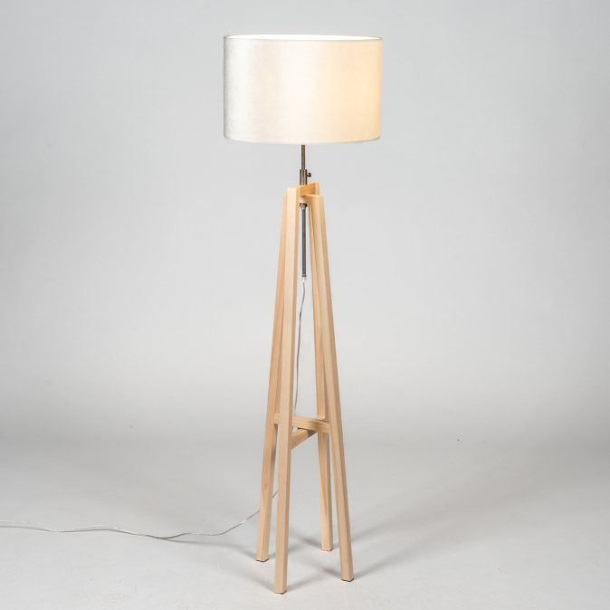 Een elegante vloerlamp met houten poten. Het hout is licht van kleur en wordt ook wel blankhout genoemd. Dit materiaal wordt veel gebruikt in Scandinavische interieurs en past ook perfect in de woonstijl Japandi. Naast de mooie vormgeving en het natuurlijke materiaal, heeft de lamp nog meer te bieden. Zo zit de schakelaar op een heel handige plek; op de zwarte fitting van de lamp. Omdat de schakelaar op een makkelijke plek zit, is de lamp zo aan- of uit gezet, zonder de schakelaar aan het snoer onder de bank te moeten zoeken. De vloerlamp wordt geleverd met een beige kap. Deze lampenkap is bekleed met fluweel in een warme beige tint; perfect voor wie houdt van een verfijnde, rustige sfeer in huis. De binnenkant is uitgevoerd in bijpassend beige, wat zorgt voor een stijlvolle ton-sur-ton look en zacht, sfeervol licht. Bijzonder: De kap kan eenvoudig in hoogte worden versteld door de verstelbare schroef.Voordelen Tripod lamp