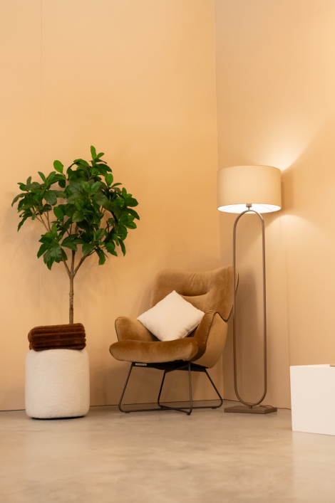 Elegant, modern, tijdloos en helemaal naar wens: deze vloerlamp bestaat uit een elegante, bruine lampvoet en een linnen ronde lampenkap. Samen vormen ze sfeer in je interieur, met een rustige en tijdloze uitstraling.Lampvoet