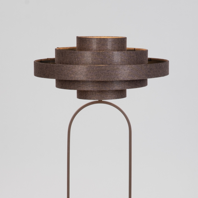 Elegant, modern, tijdloos en helemaal naar wens: deze vloerlamp bestaat uit een elegante, bruine lampvoet en een stoffen kap in bijzondere vormgeving. Samen vormen ze sfeer in je interieur, met een rustige en tijdloze uitstraling.Lampvoet