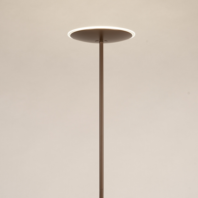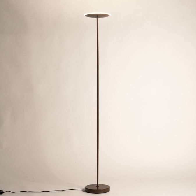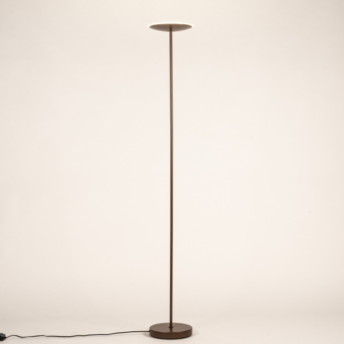 Deze moderne, ultraslanke bruine uplighter bewijst dat uplighters helemaal terug zijn en perfect passen in een eigentijds interieur.Lichtwaarden