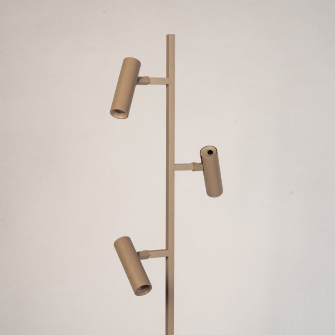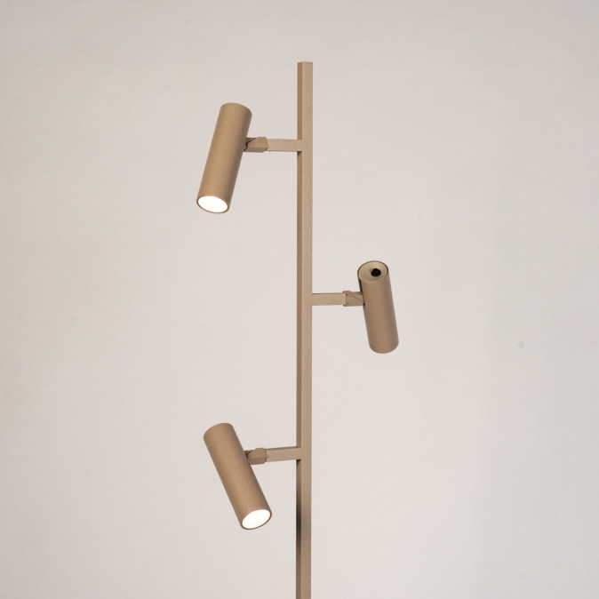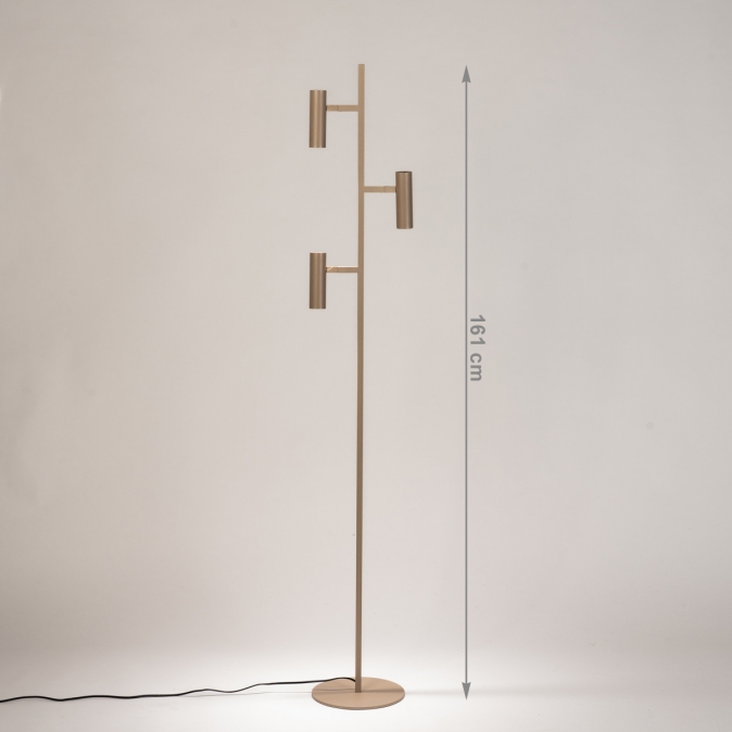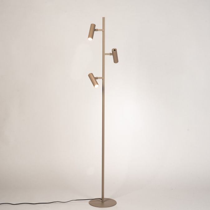 Strakke taupekleurige vloerlamp met drie verstelbare spots