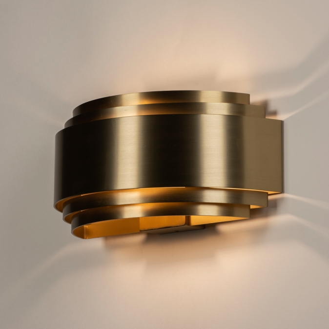 Deze bijzondere wandlamp is groot, heeft een halfronde vorm en is helemaal goud; ook de binnenkant. Het licht schijnt zowel naar boven als naar beneden langs de wand en door de openingen wordt het licht sfeervol verspreid. Geniet van sfeervolle verlichting in uw woonkamer, slaapkamer of in uw hal bijvoorbeeld.Voordelen halfronde wandlamp in goud