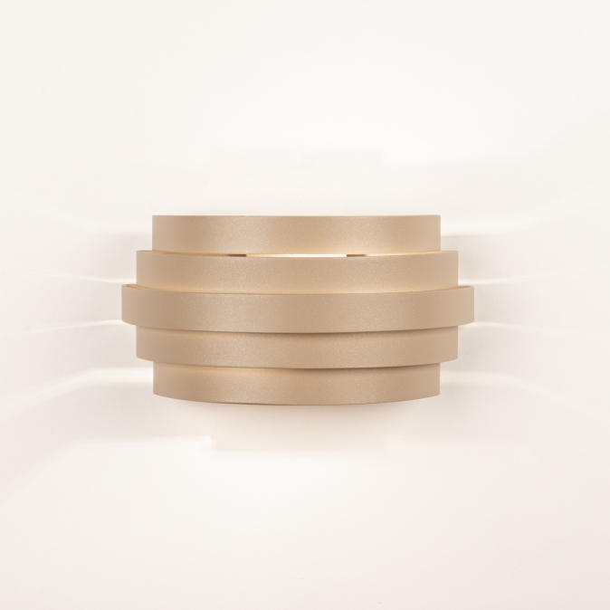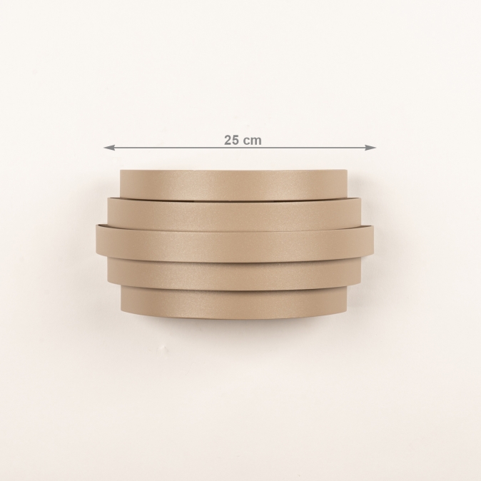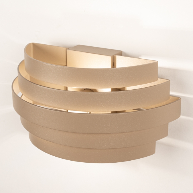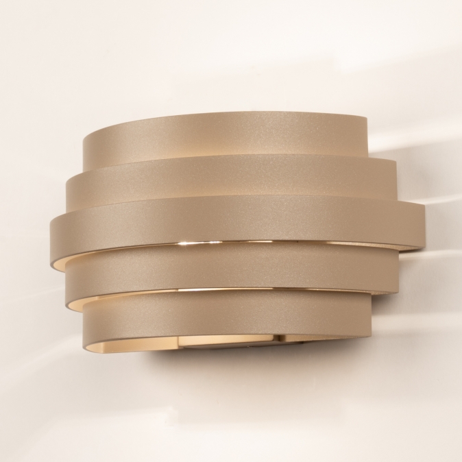 Deze bijzondere, grote wandlamp is uitgevoerd in een beige kleur en heeft een opvallend en uniek design. In de beige kleur is een uiterst subtiele glinstering verwerkt die de kleur net dat beetje extra geeft. Geniet van sfeervolle verlichting in uw woonkamer, slaapkamer of bijvoorbeeld uw hal. De wandlamp bestaat uit halve ringen in verschillende afmetingen. Tussen deze ringen zit een subtiele ruimte waardoor het licht er sfeervol tussendoor schijnt en er een mooie lichtreflectie op de wand ontstaat.Voordelen beige wandlamp met halve ringen