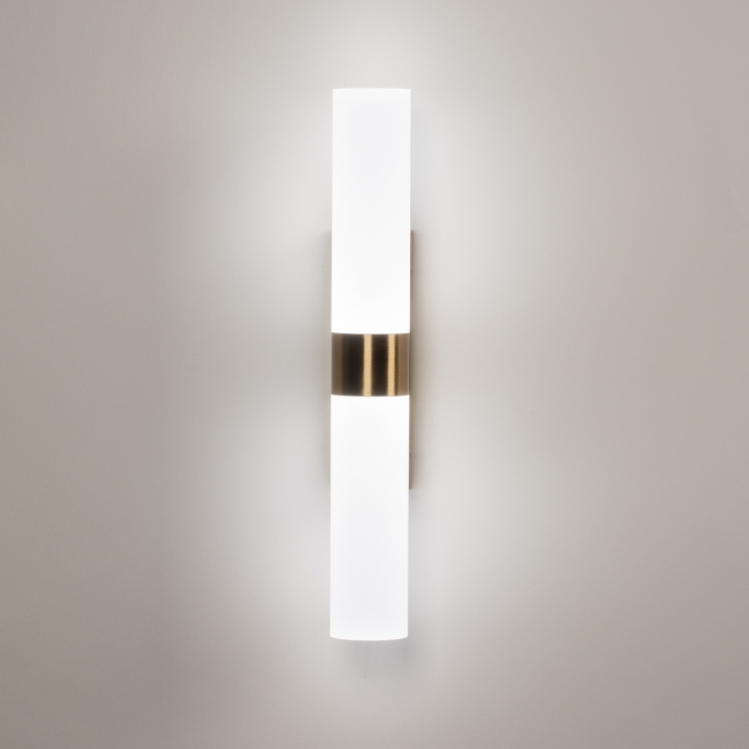 Verticaal of horizontaal? Deze gouden wandlamp met melkglas kan op beide manieren worden opgehangen. Ga voor horizontaal voor een klassieke look of kies ervoor om de lamp verticaal te plaatsen voor een moderne uitstraling. Het matte glas zorgt voor mooi egaal licht. Uniek: stel zelf de gewenste lichtkleur in met de schakelaar achter de wandplaat. Warm wit (3000 kelvin) of koel licht (4000 kelvin), u bepaalt.Voordelen gouden badkamer wandlamp