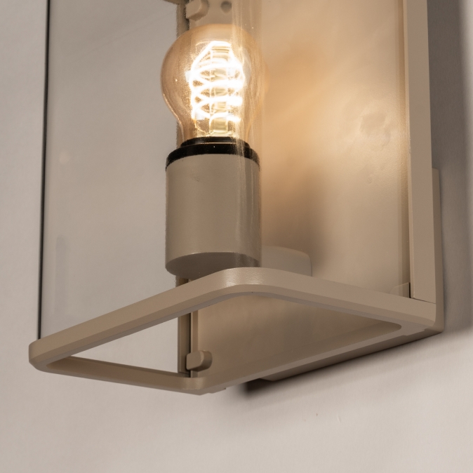 Breng je buitenruimte tot leven met deze stijlvolle wandlamp. Het heldere glas en de afgeronde hoeken geven een moderne, elegante uitstraling, terwijl het licht zich mooi langs de muur verspreidt. Dankzij de grotere afmeting en IP44-waarde geniet je van sfeervolle verlichting, zelfs op regenachtige dagen.Voordelen grote buitenwandlamp in beige met glas