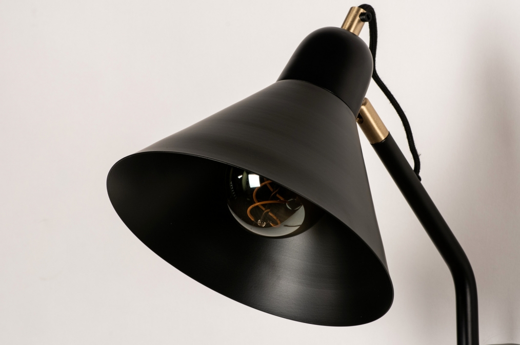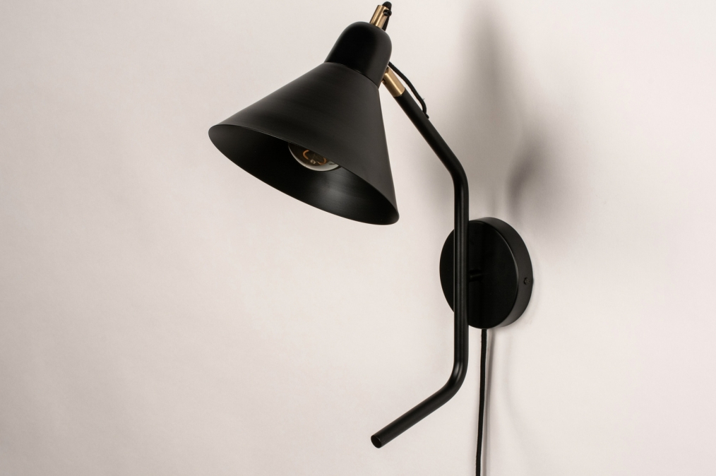Moderne, zwarte wandlamp voorzien met messingkleurige details. Deze wandlamp heeft een slank armatuur en een kap met een open onderzijde. Het design is hip, trendy en tijdloos bovendien. De kap zelf is iets richtbaar zodat u de lichtbundel naar wens kunt plaatsen. Voor het meest sfeervolle resultaat adviseren wij u een heldere led lichtbron te gebruiken. Led staat bekend om zijn lange levensduur en is zeer zuinig in gebruik. Tevens wordt het armatuur niet heet. Indien gewenst kunt u een lichtbron toevoegen tijdens het bestelmoment. Aan het zwarte snoer vindt u de lichtschakelaar.