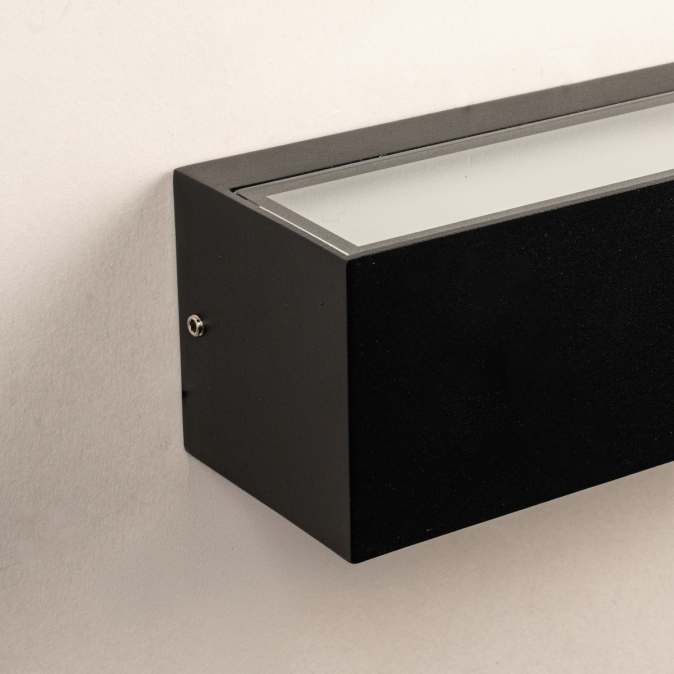 Deze wandlamp is gemaakt van aluminium, uitgevoerd in een mat zwarte kleur en valt op door zijn slanke, ranke vormgeving. Zowel aan de boven-als onderzijde is dit armatuur voorzien van ingebouwde ledverlichting. Zo schijnt het licht langs de wand zonder hinderlijke inkijk te creëren.Voordelen buitenlamp / badkamerlamp in mat zwart