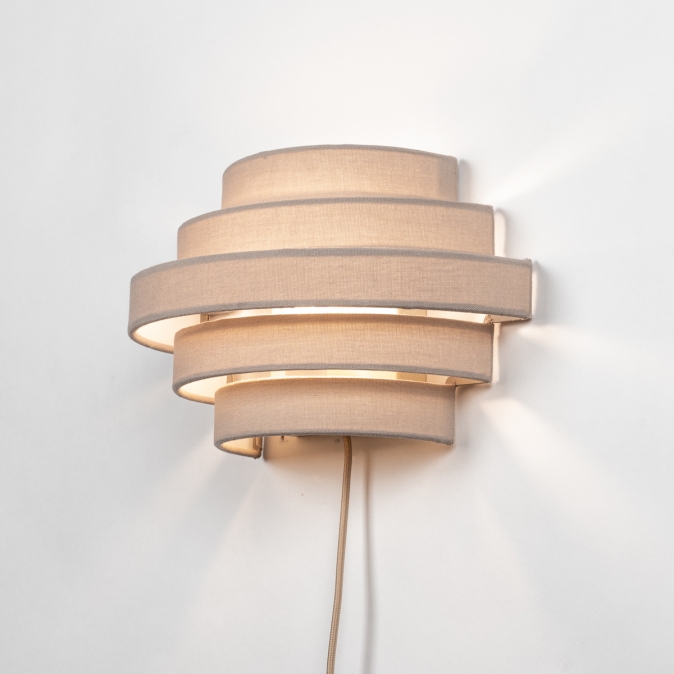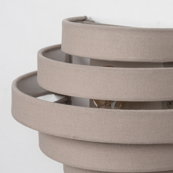 Halfronde wandlamp in natuurlijke, linnen stof, uitgevoerd in een taupe kleur
